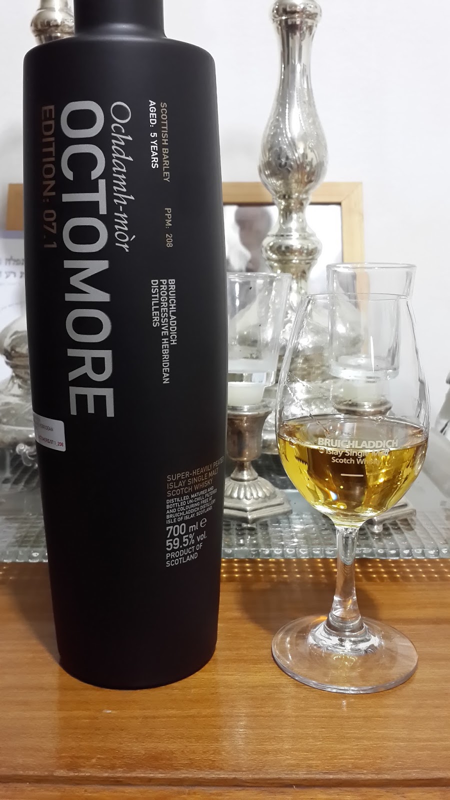 I poured this Octomore into my Bruichladdich glass, (a